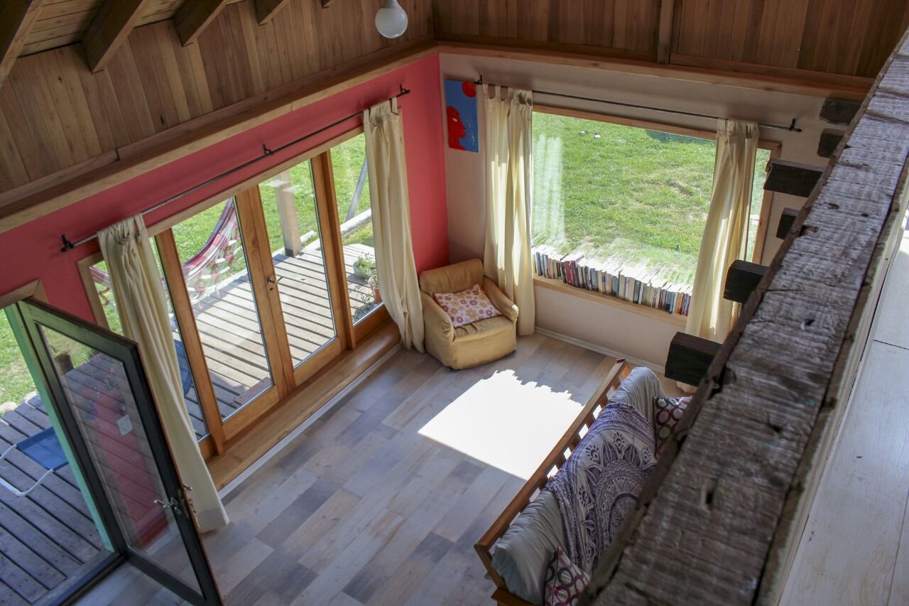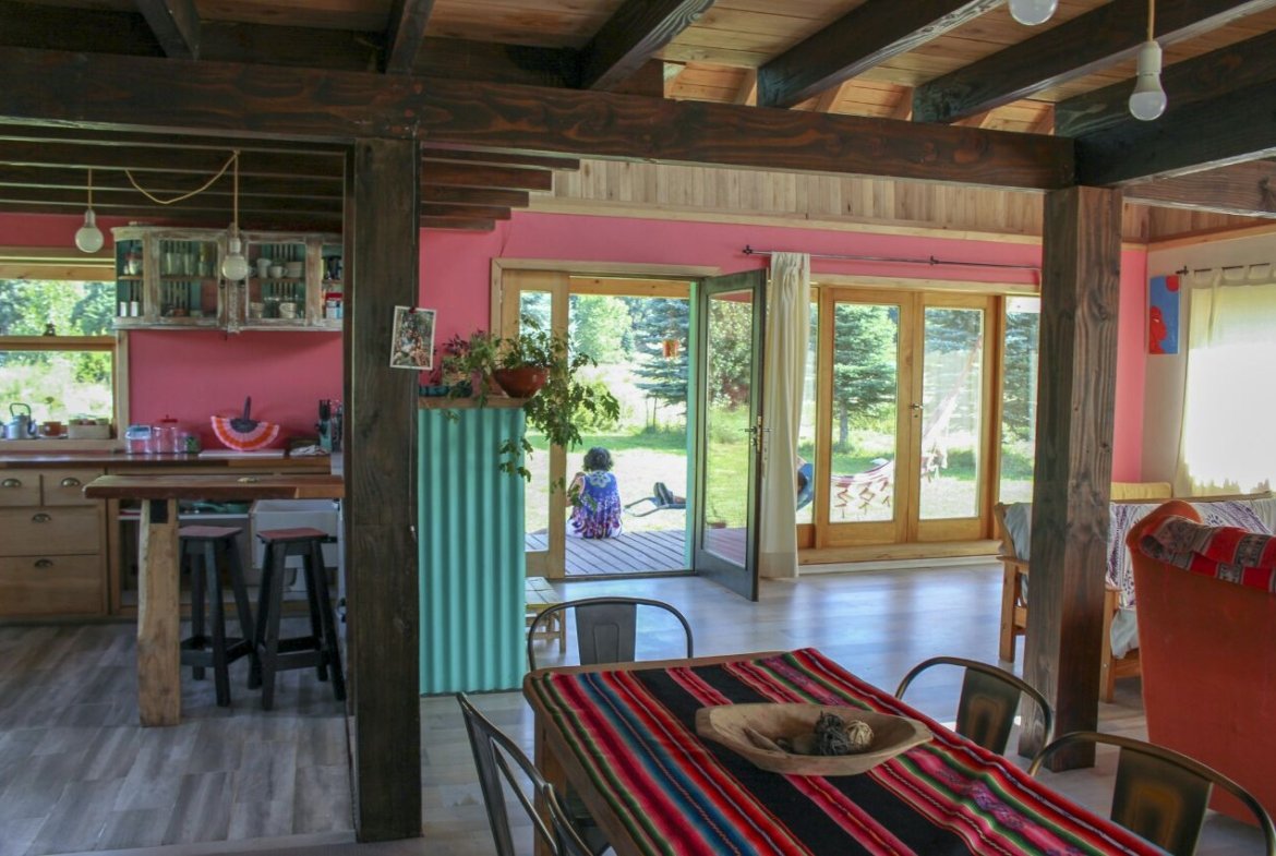 Todo el perímetro de la casa con deck, techado de 2 metros de ancho