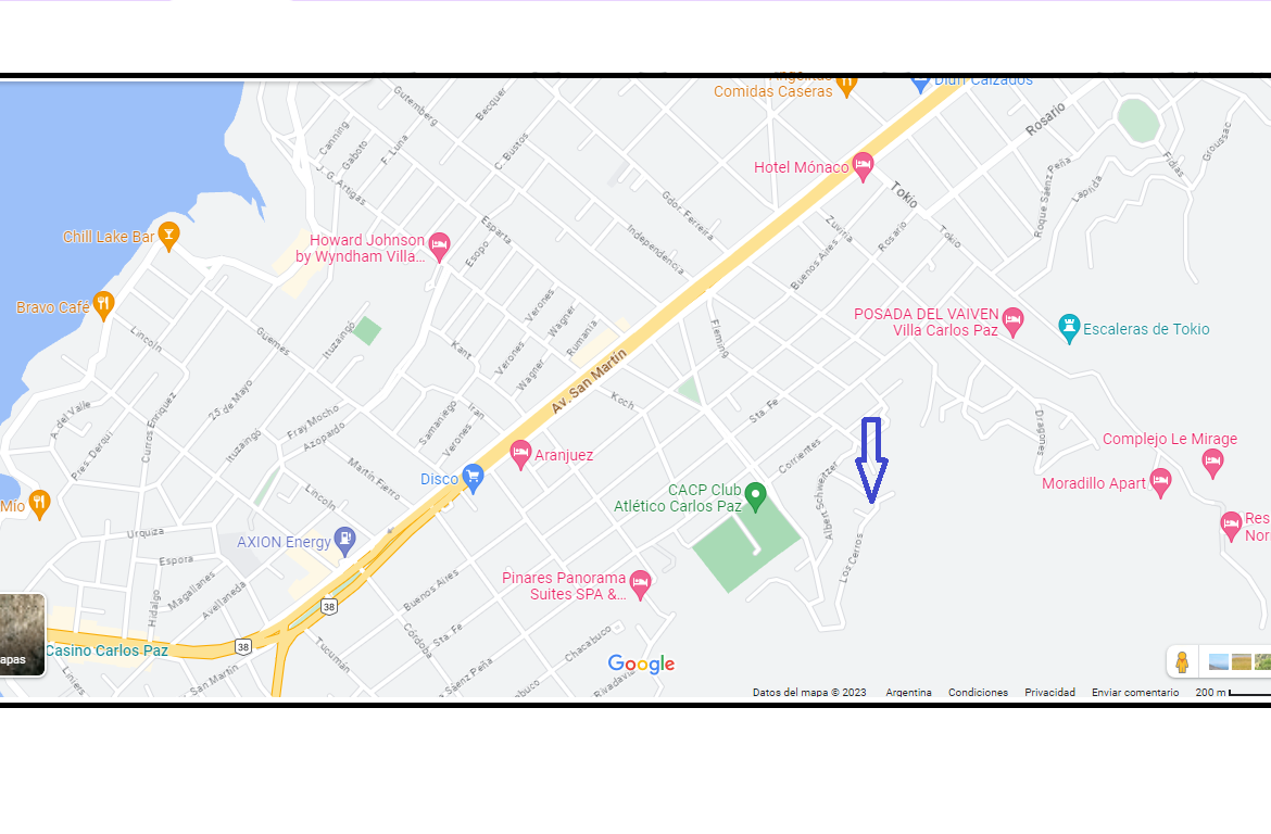 • Dirección Los Cerros y Houssay, Villa Carlos Paz, Municipio de Villa Carlos Paz, Pedanía San Roque, Departamento Punilla, Córdoba, X5166, Argentina
